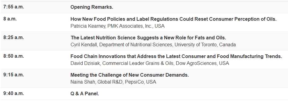 This session will provide a comprehensive look at how the latest changes in the scientific, consumer, regulatory, and business landscapes will impact the oilseed supply chain. The FDA has postponed the labeling regulation timetable to sync with USDA on GMO labeling regulations, and the National Academies of Science has recommended a newly designed framework for the 2020 Dietary Guidelines for Americans that will determine how oil consumption is positioned in the American diet. New nutrition research is showing that healthy oils, and specific fatty acids, provide multiple benefits beyond heart health and now can help in the management of obesity and diabetes. The American Heart Association has also issued new Guidelines for Fats and Oils. In addition, consumers are also demanding clean labels, transparency, and sustainability in the foods they buy and the food chain and manufacturers are responding. This session will examine the evolving landscape for ingredient innovation, product development, brand messaging, and explore how major food companies can meet the growing demand for healthier, functional products.