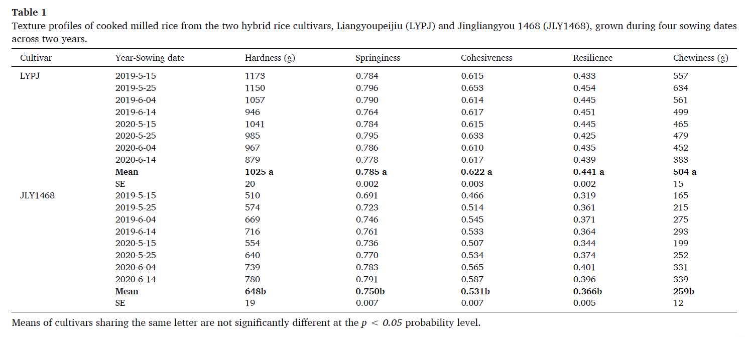 上海腾拔质构仪助力湖南农业大学在国际食品期刊发表杂交水稻相关论文