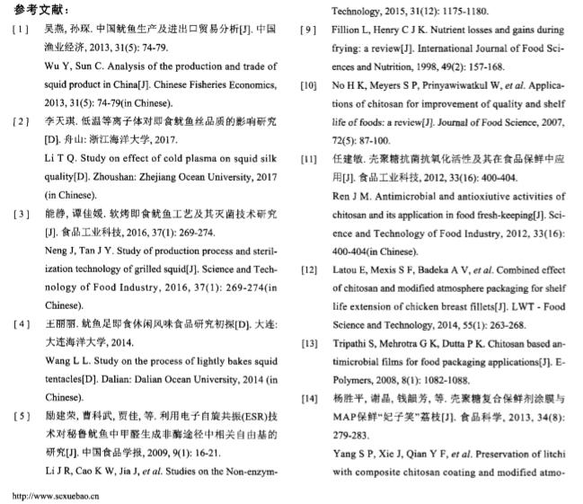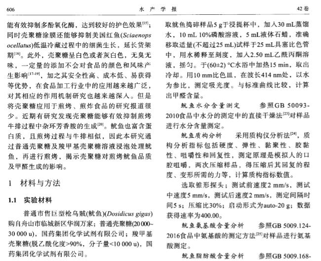 质构仪相关论文(7):壳聚糖对煎烤鱿鱼品质及甲醛生成的影响