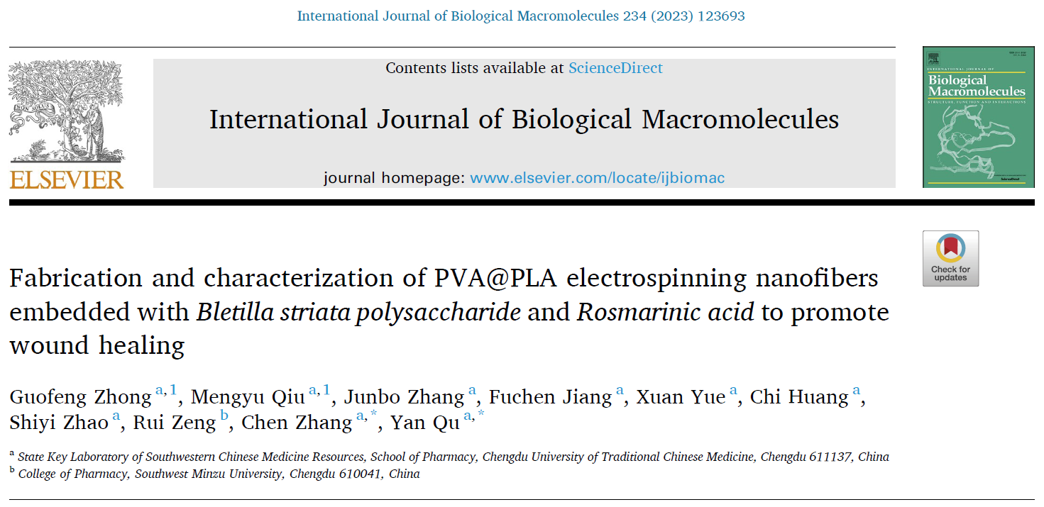 上海腾拔Rapid TA+质构仪助力成都中医药大学药学院研究人员在国际期刊《International Journal of Biological Macromolecules》(中科院一区,IF=8.025)发表了题为"Fabrication and characterization of PVA@PLA electrospinning nanofibers embedded with Bletilla striata polysaccharide and Rosmarinic acid to promote wound healing"的研究论文。