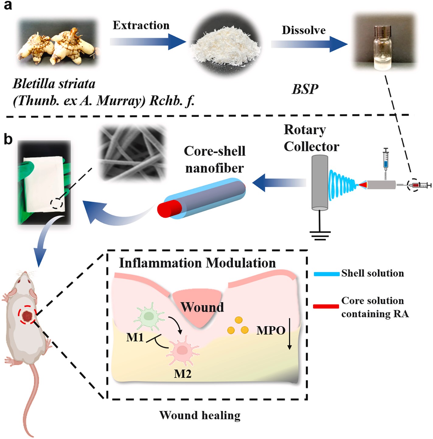 RA-BSP-PVA@PLA同轴纳米纤维设计策略示意图