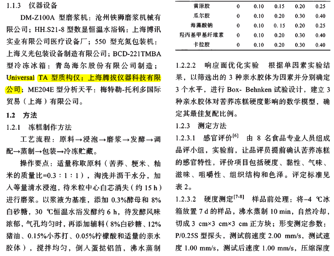 结果测定:硬度、弹性、回复性、内聚性和咀嚼性等指标。