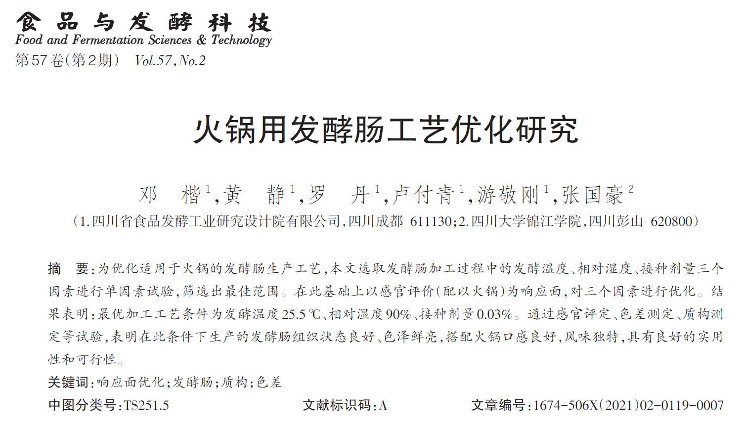 当前位置:首页技术文章质构仪相关论文:火锅用发酵肠工艺优化研究